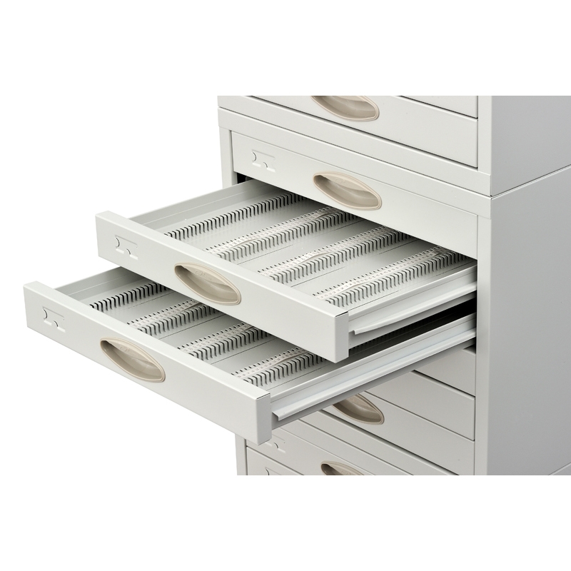El Anaquel KD-103 permite almacenar de forma segura y organizada hasta 9,000 hojas de secado y bloques histológicos, con divisiones móviles y cajones amplios que facilitan el acceso y la trazabilidad en laboratorios. Kedee