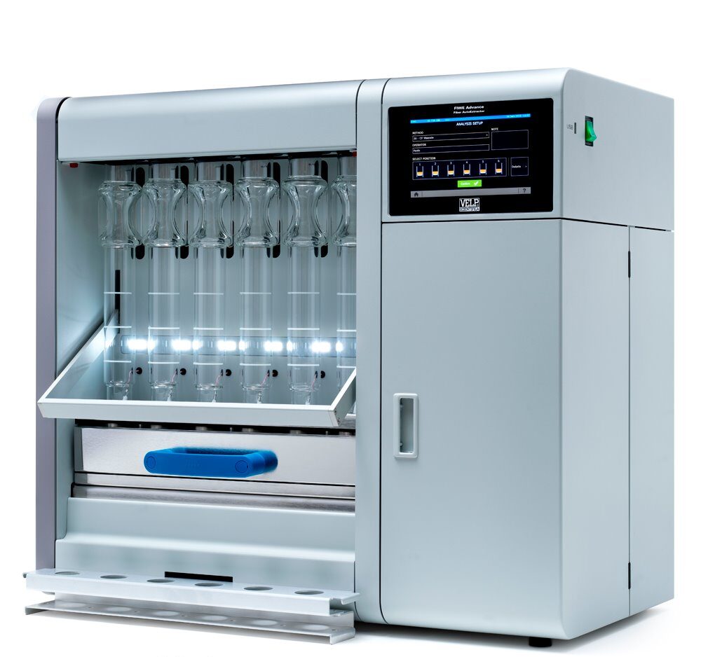 El FIWE Advance, es un analizador totalmente automático de fibra, diseñado para determinar fibra cruda (CF) y fibra detergente (NDF, ADF, ADL) según métodos oficiales (ISO, AOAC), con mínima intervención del operador.