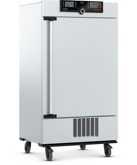 La Cámara Climática Memmert ICH260L ofrece una capacidad de 256 litros (9 ft³) y combina control de temperatura, humedad e iluminación, ideal para pruebas de estabilidad conformes a estándares ICH, WHO, EMA, GMP, GLP, GCCP