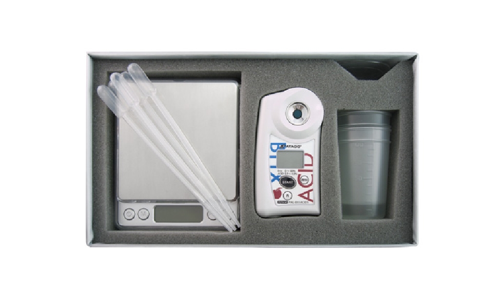 El Refractómetro Digital Portátil PAL-BX|ACID5 Master Kit es una solución compacta y profesional para medir simultáneamente el contenido de azúcar (Brix) y acidez (conversión a ácido málico) en jugo de manzana. Sus principales características incluyen: