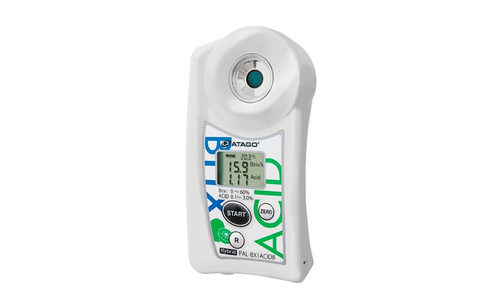 El Refractómetro Digital Portátil PAL-BX|ACID8 mide con precisión el azúcar (Brix) y la acidez total convertida a ácido tartárico, ideal para uvas.