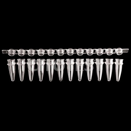 Cada tira contiene 8 tubos de 0.2 mL, fabricados en polipropileno (PP) de alta calidad, material que garantiza resistencia química, transparencia y compatibilidad con termocicladores estándar.